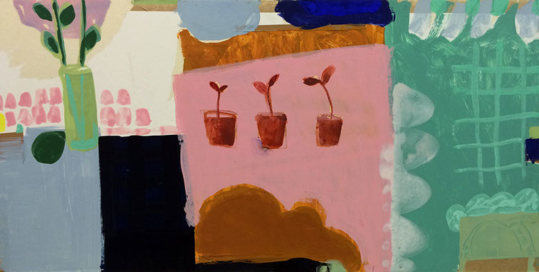 Blumenbank, Acryl auf Karton, 60/95 cm